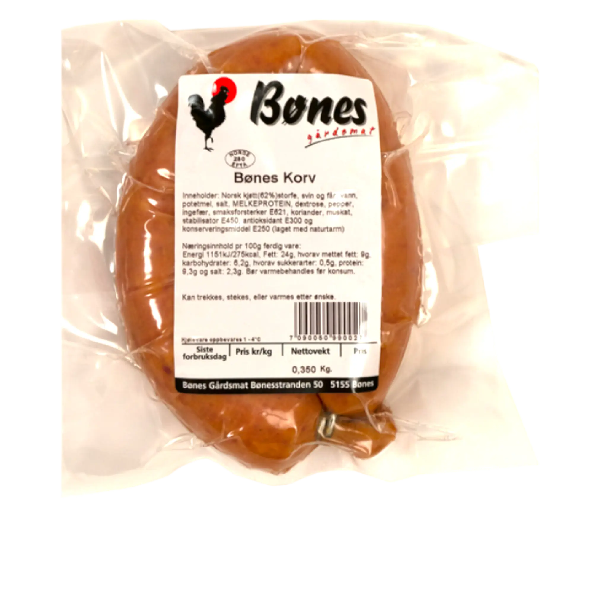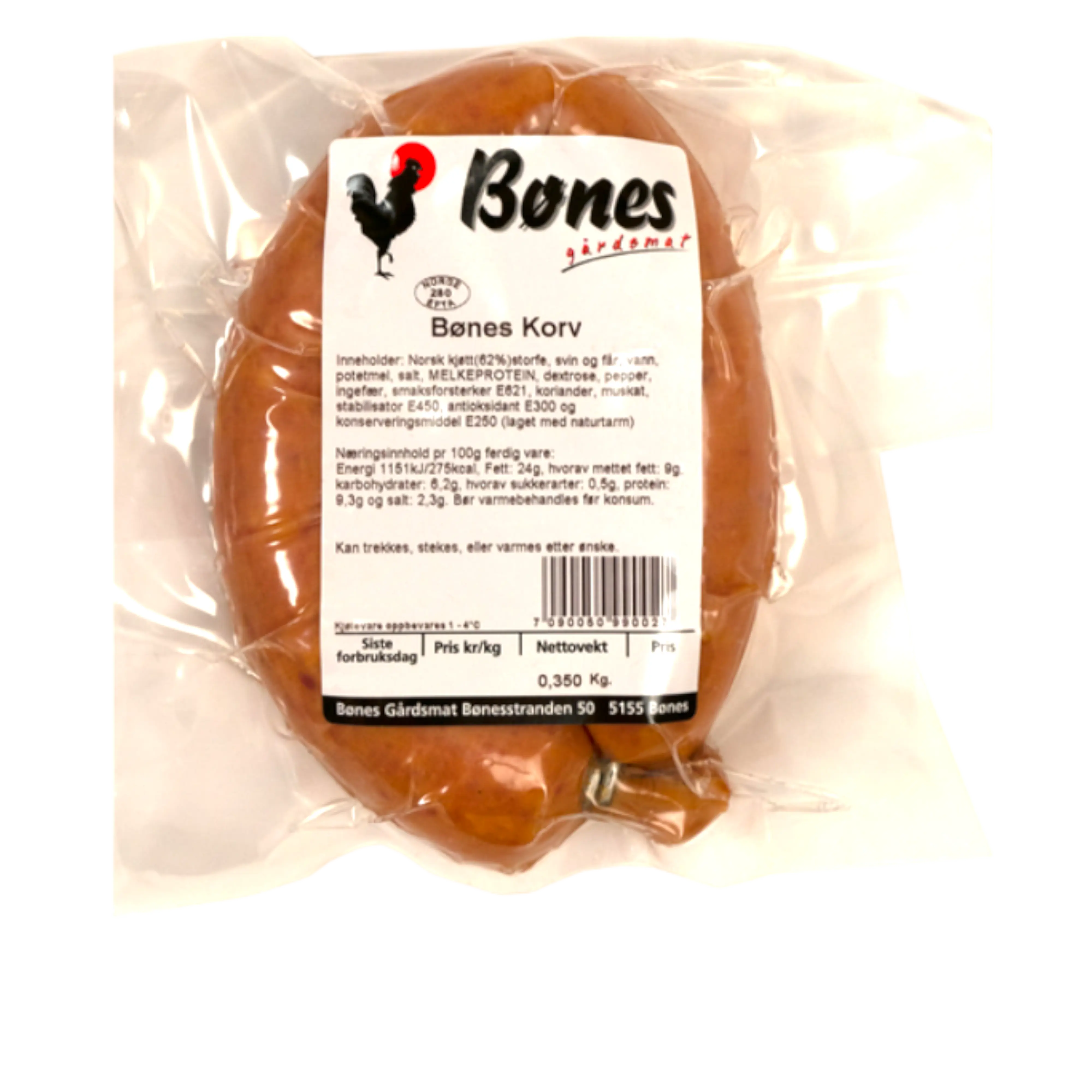 Vår variant av "Vossakorv", laget på Bønes. 4x NM gull i Norgesmesterskap for kjøttprodukter.