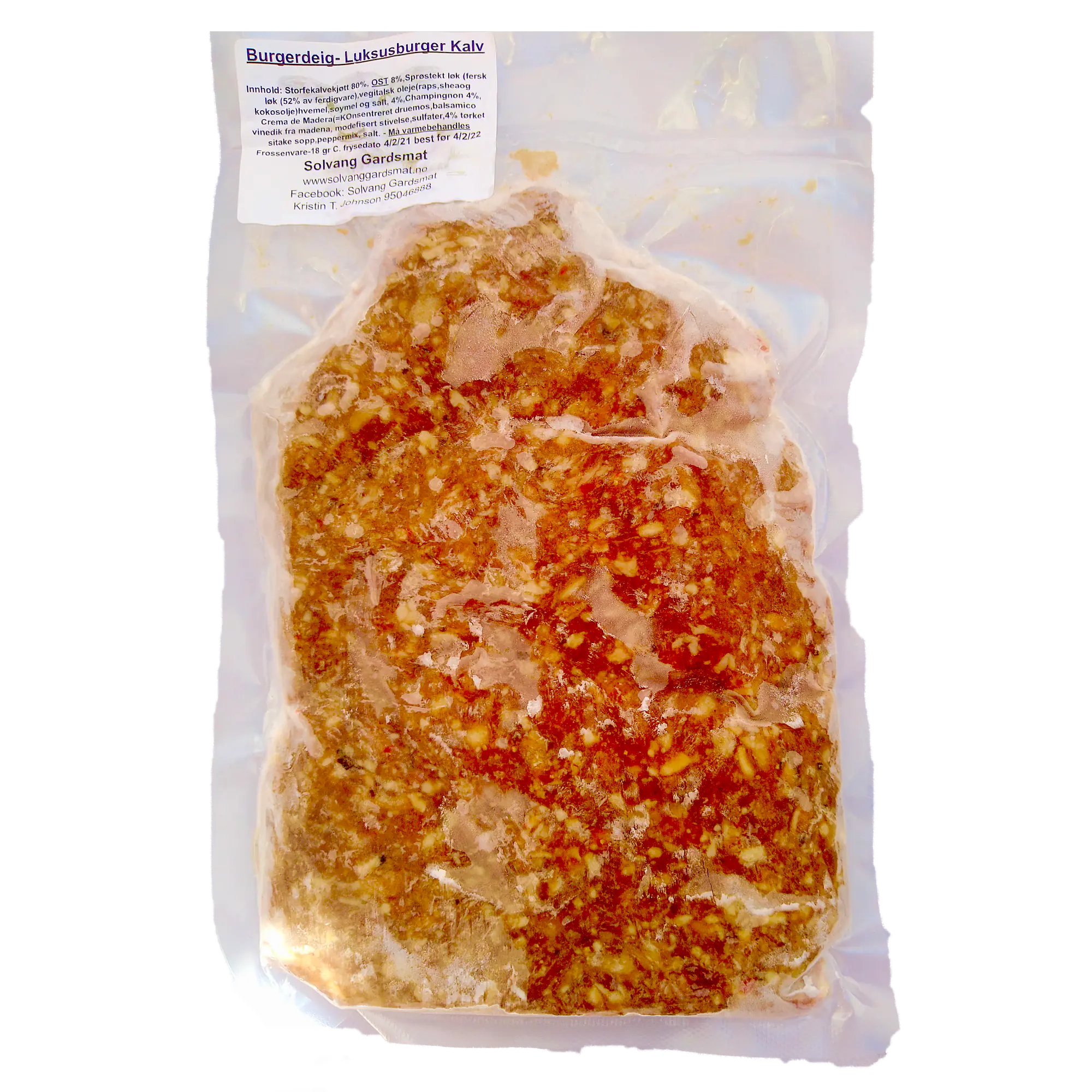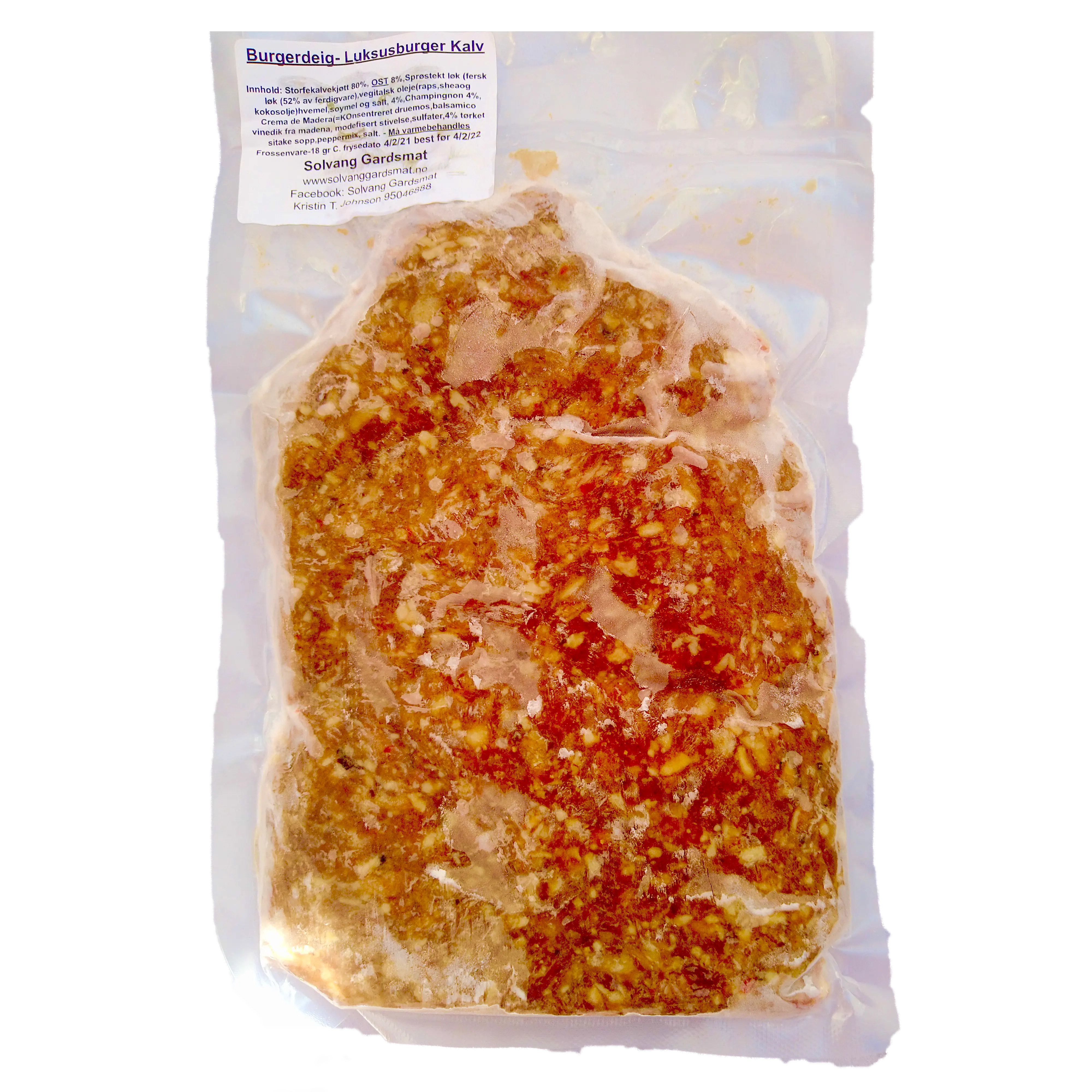Burgerdeig er storfekjøtt av kalv, krydret og tilsatt mye godt. Denne pakken er svært praktisk for de som liker å bestemme størelsen og tykkelsen på burgeren selv. Men kjøttet fungerer til mer enn bare burgere, fungerer også til kjøttkaker, kjøttdeig til pasta og taco. Den kommer vakuumpakket i rå tilstand og pakket plat så det er rakst å tine.