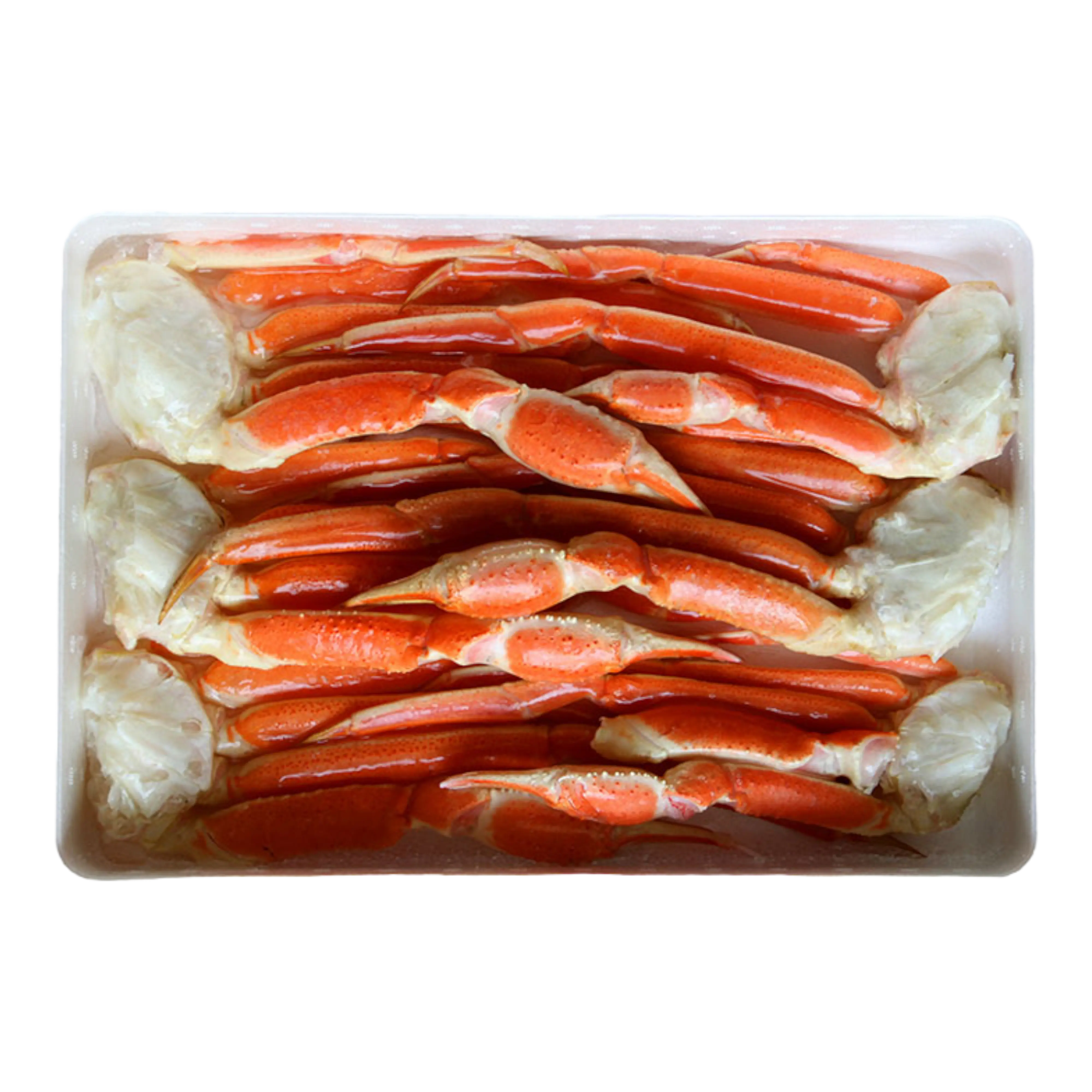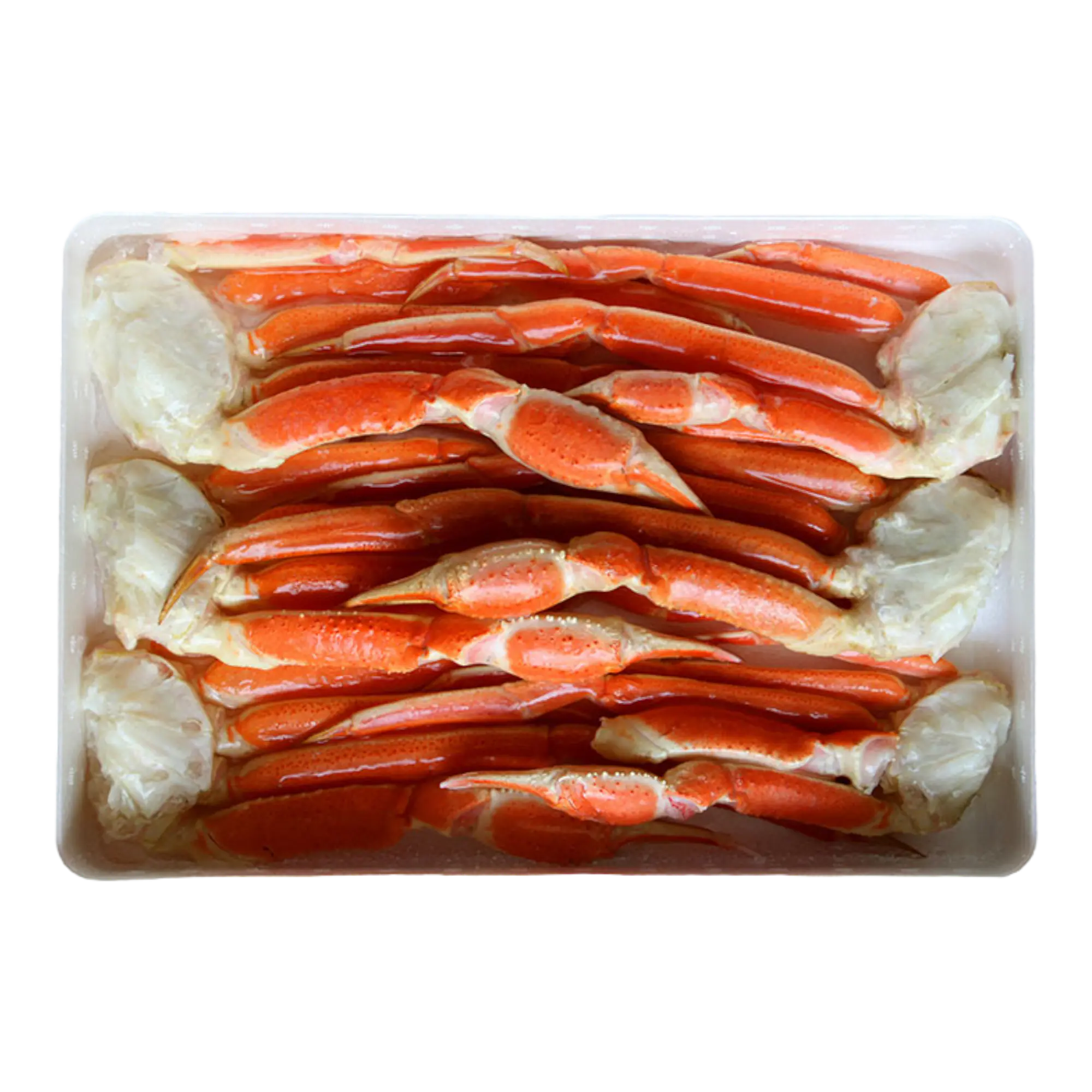 Kartong med kokt og fryst snøkrabbe. Fisket og produsert ombord på M/V Vestland Arctic. B-sortering er krabbe med en klo, og ulik størrelse. Fryst snøkrabbe er lettere å jobbe med. Kjøttet får en bedre struktur og blir bedre på smak. Krabbekjøttet tåler varmebehandling selv om det allerede er kokt.