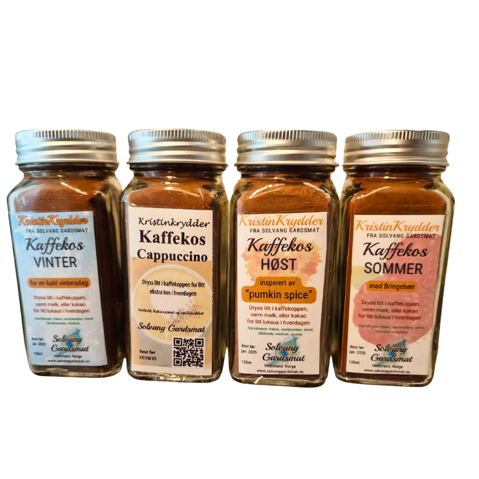Blandinger som gir litt ekstra til kaffen. Ha litt i trakteren eller strø litt rett i kaffekoppen eller kakaoen. Kommer i glass på 120 ml