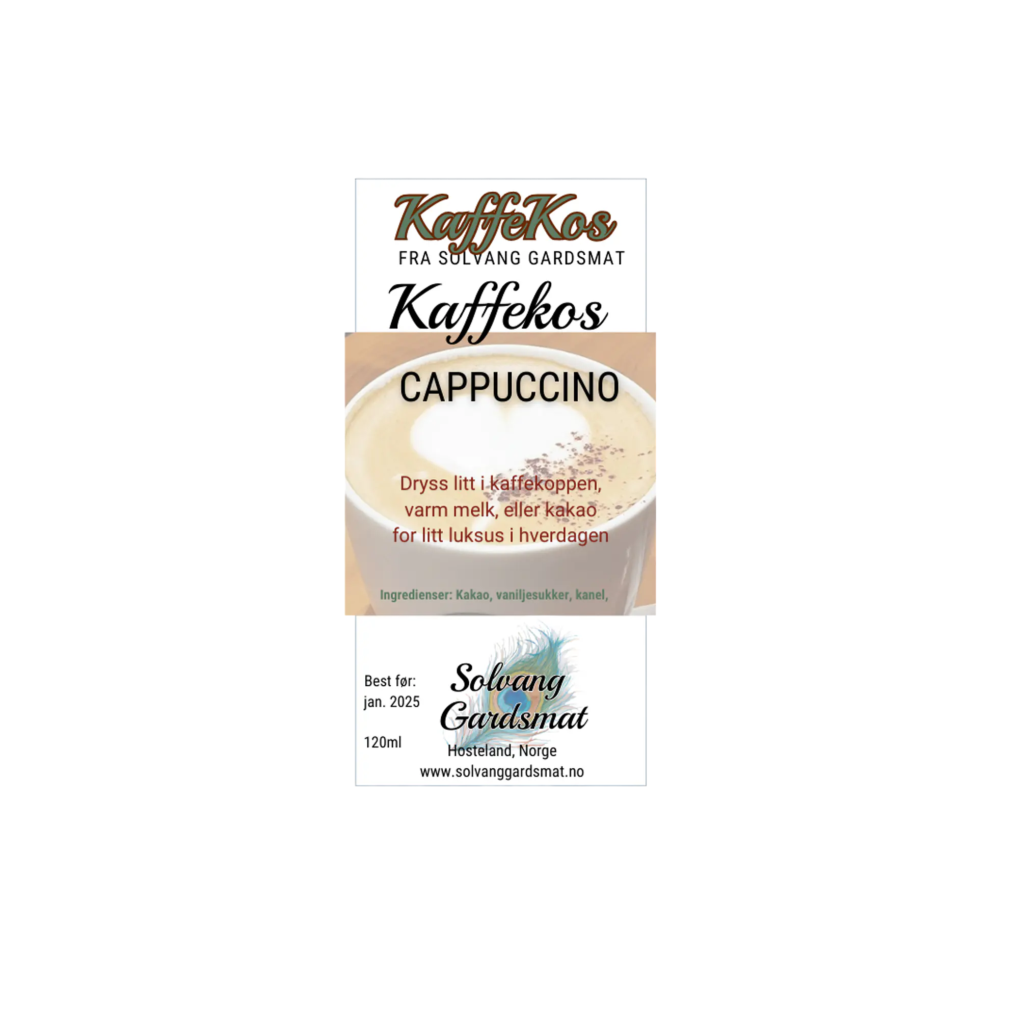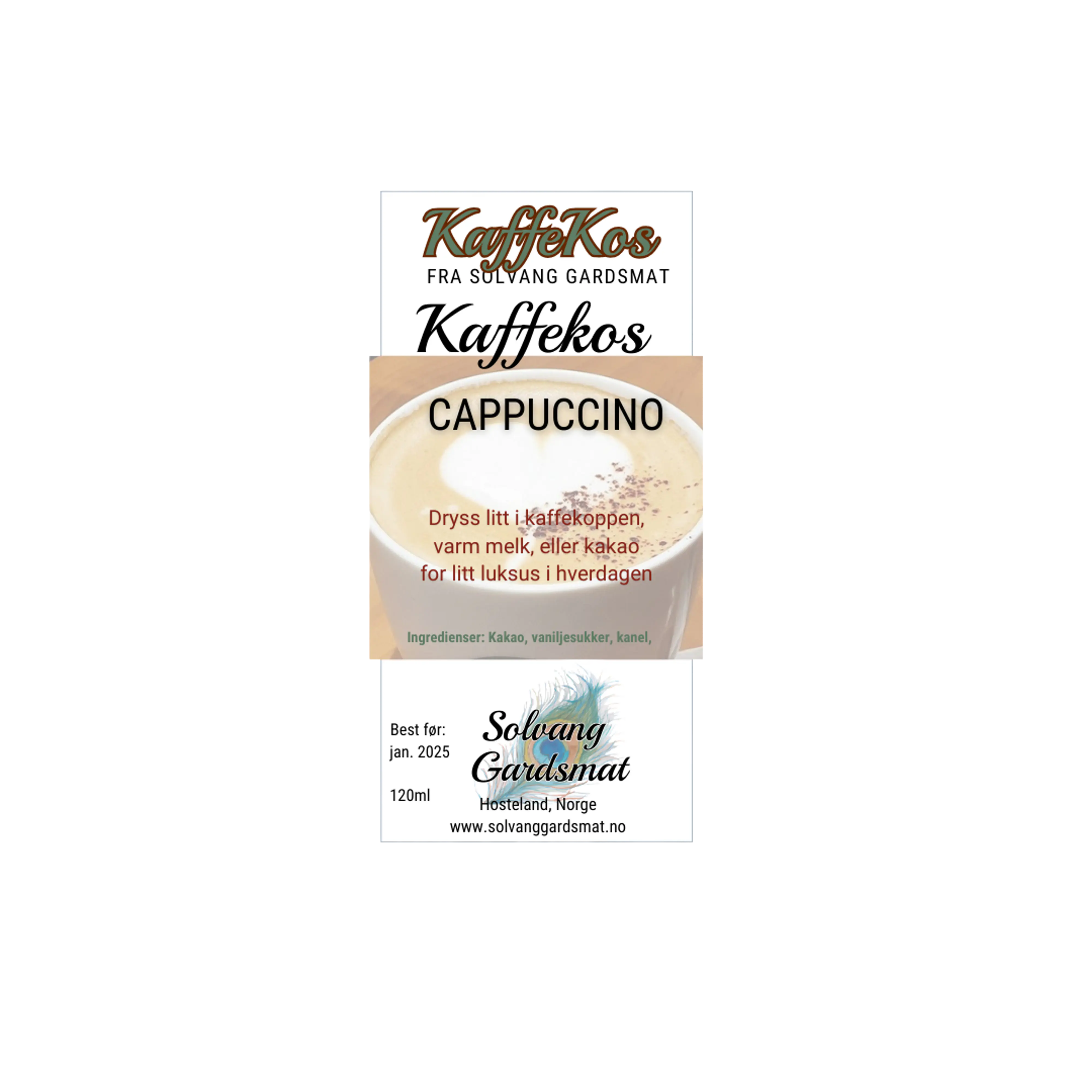 Kaffekos CAPPUCCINO En cappuccinodryss med mye kakao, Vaniljesukker og litt kanel. Ha litt i trakteren for dere som liker svart kaffe, eller dryss det over kaffe med melk og selvfølgelig til cappuccino