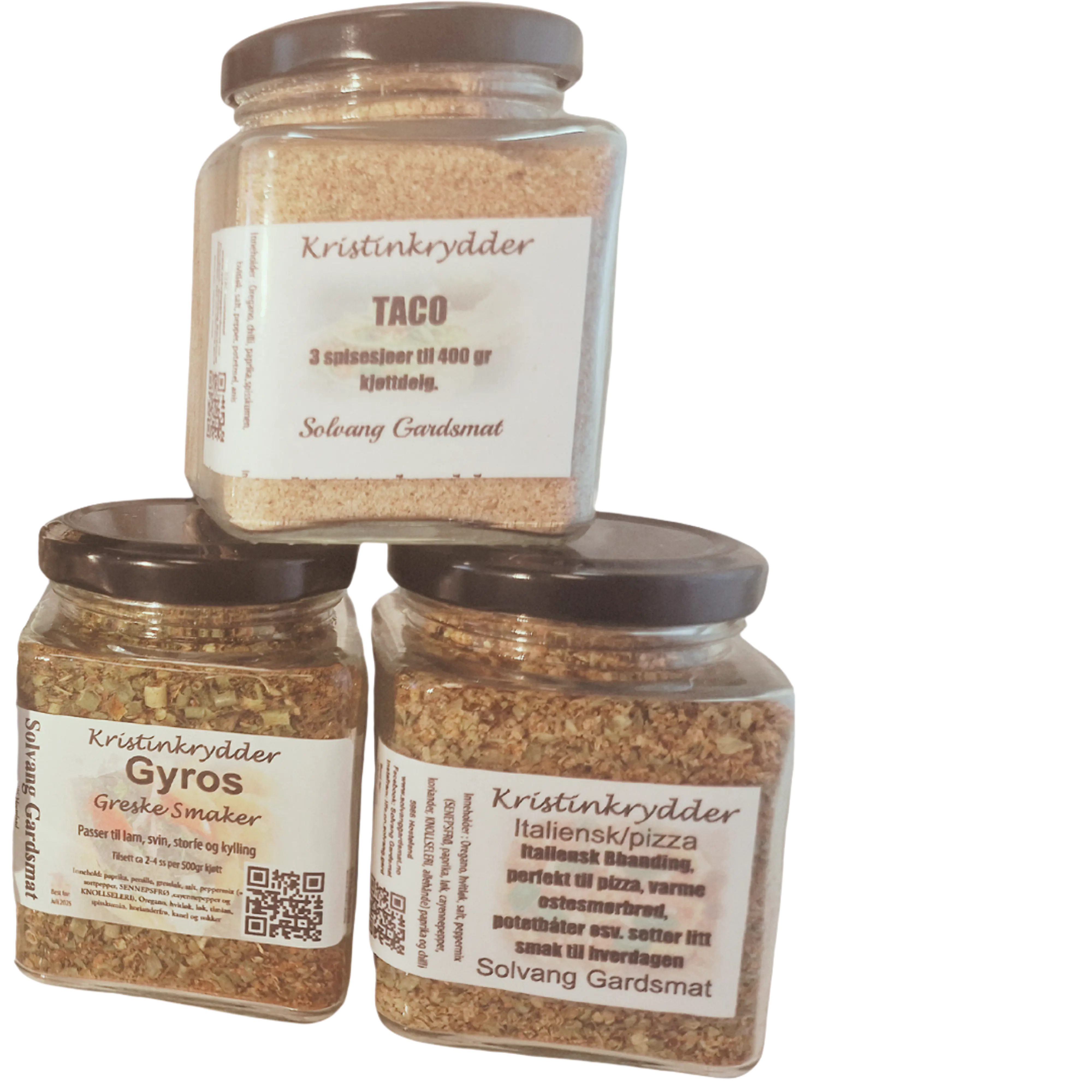 Selv de fineste råvarer trenger litt krydder for å gi de beste smaksopplevelsene. «Kristinkrydder» er en serie kryddermikser jeg har brukt selv i mange år, og som er ganske allsidige og kan brukes på mye forskjellig.