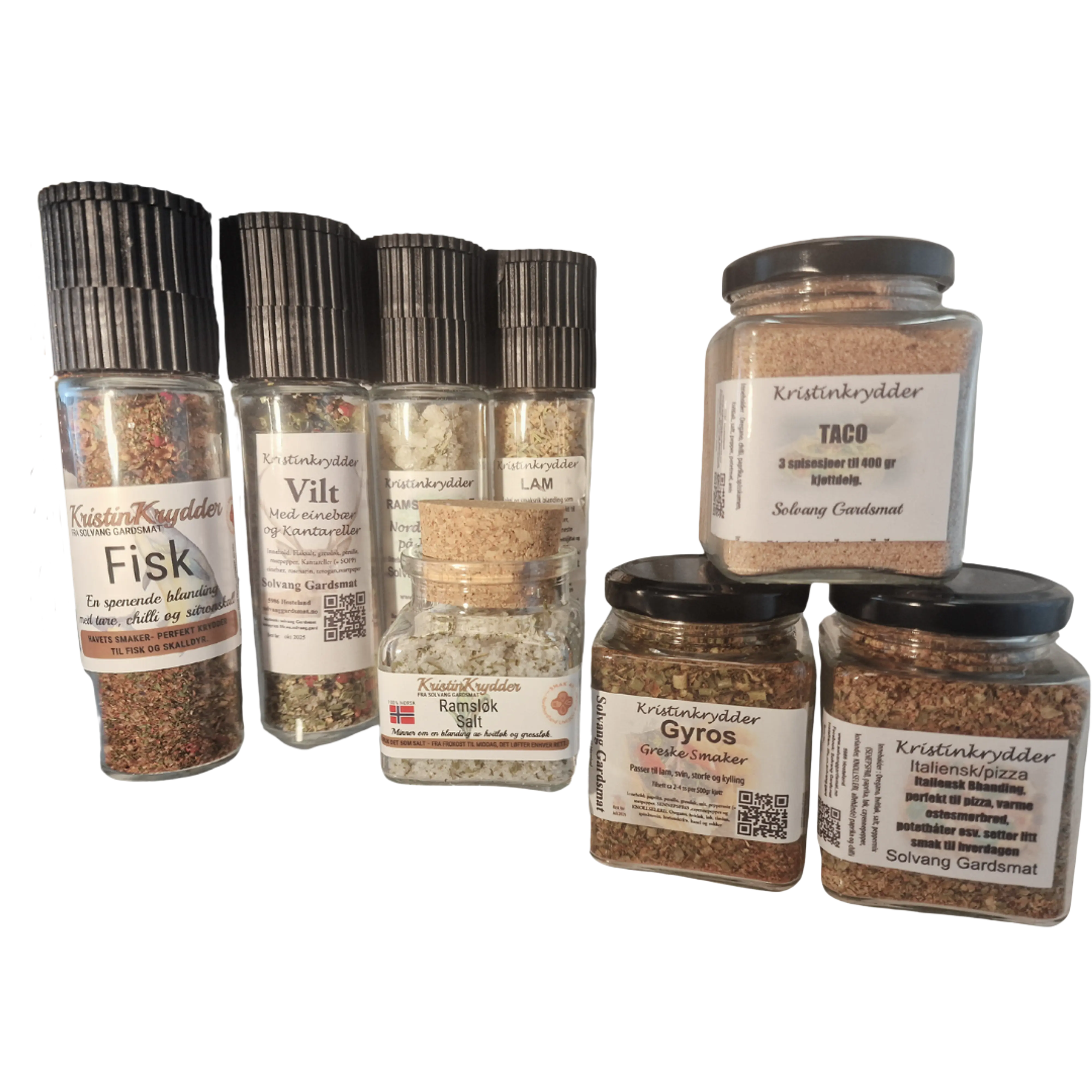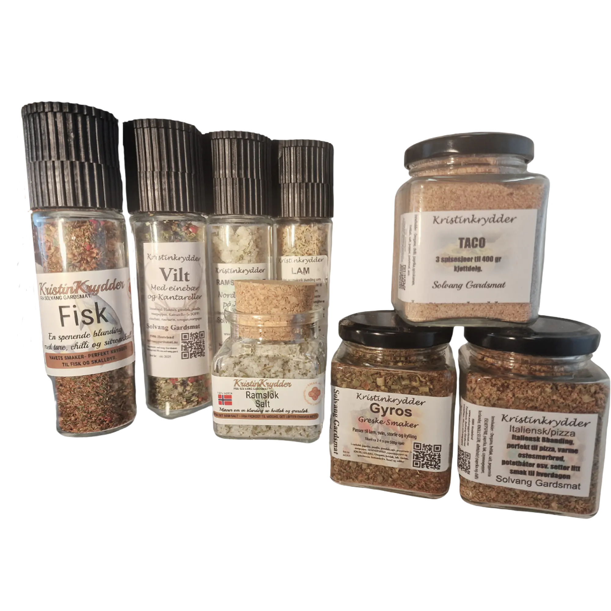 Selv de fineste råvarer trenger litt krydder for å gi de beste smaksopplevelsene. «Kristinkrydder» er en serie kryddermikser jeg har brukt selv i mange år, og som er ganske allsidige og kan brukes på mye forskjellig.