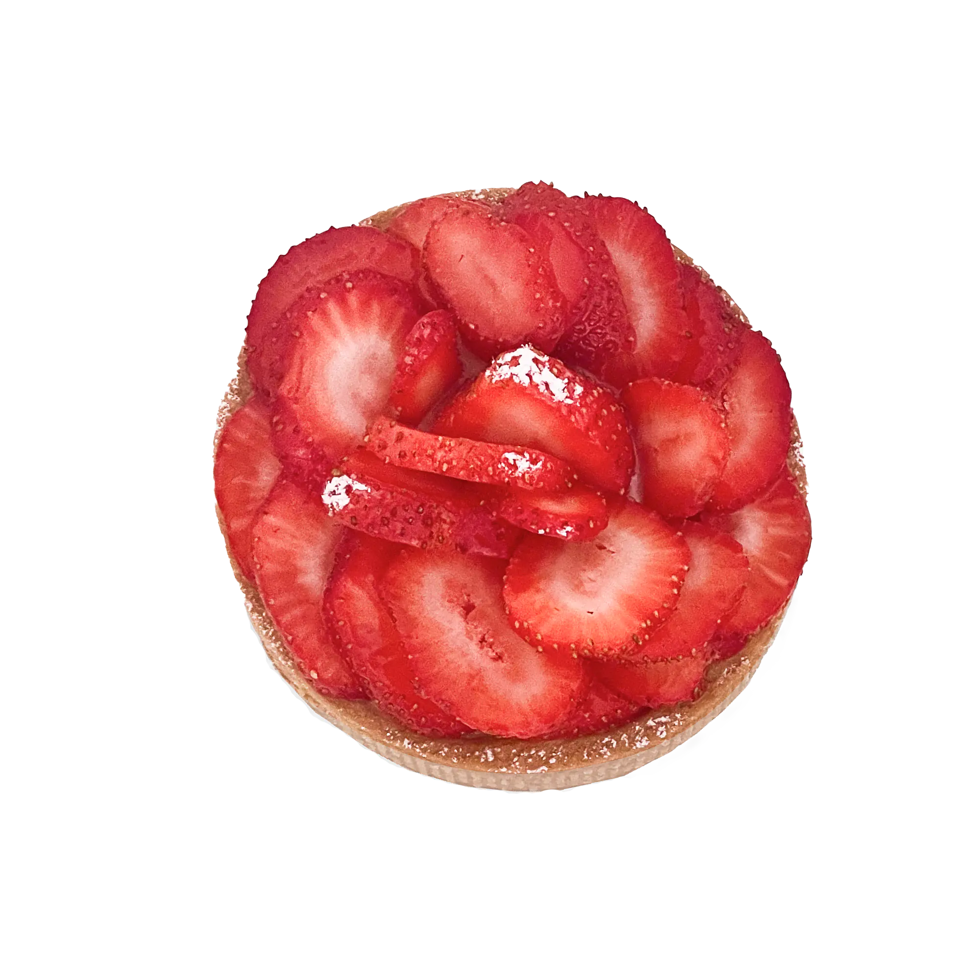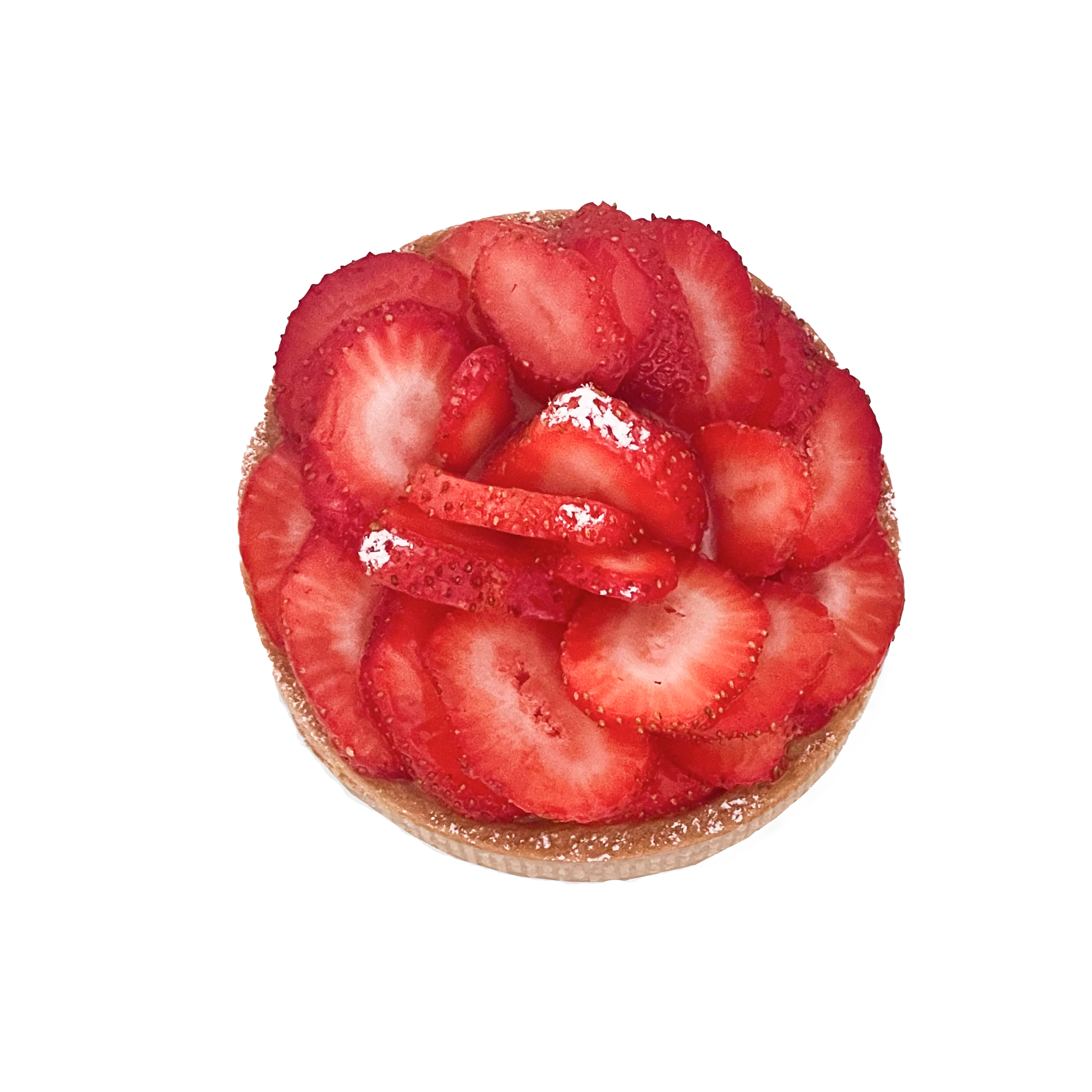 Plantebasert jordbærterte med friske norske jordbær, luftig vaniljekrem og sprø havrekjeks.