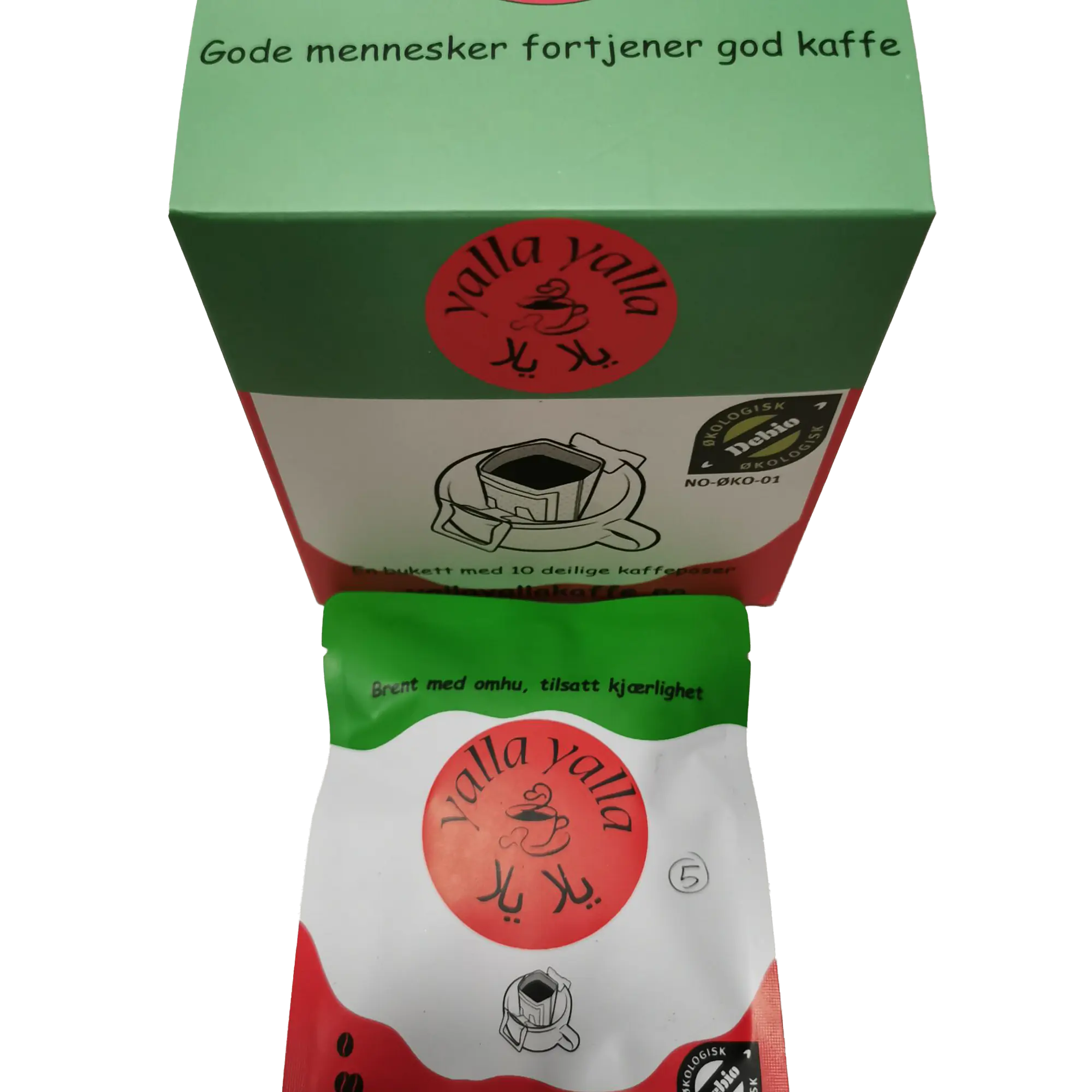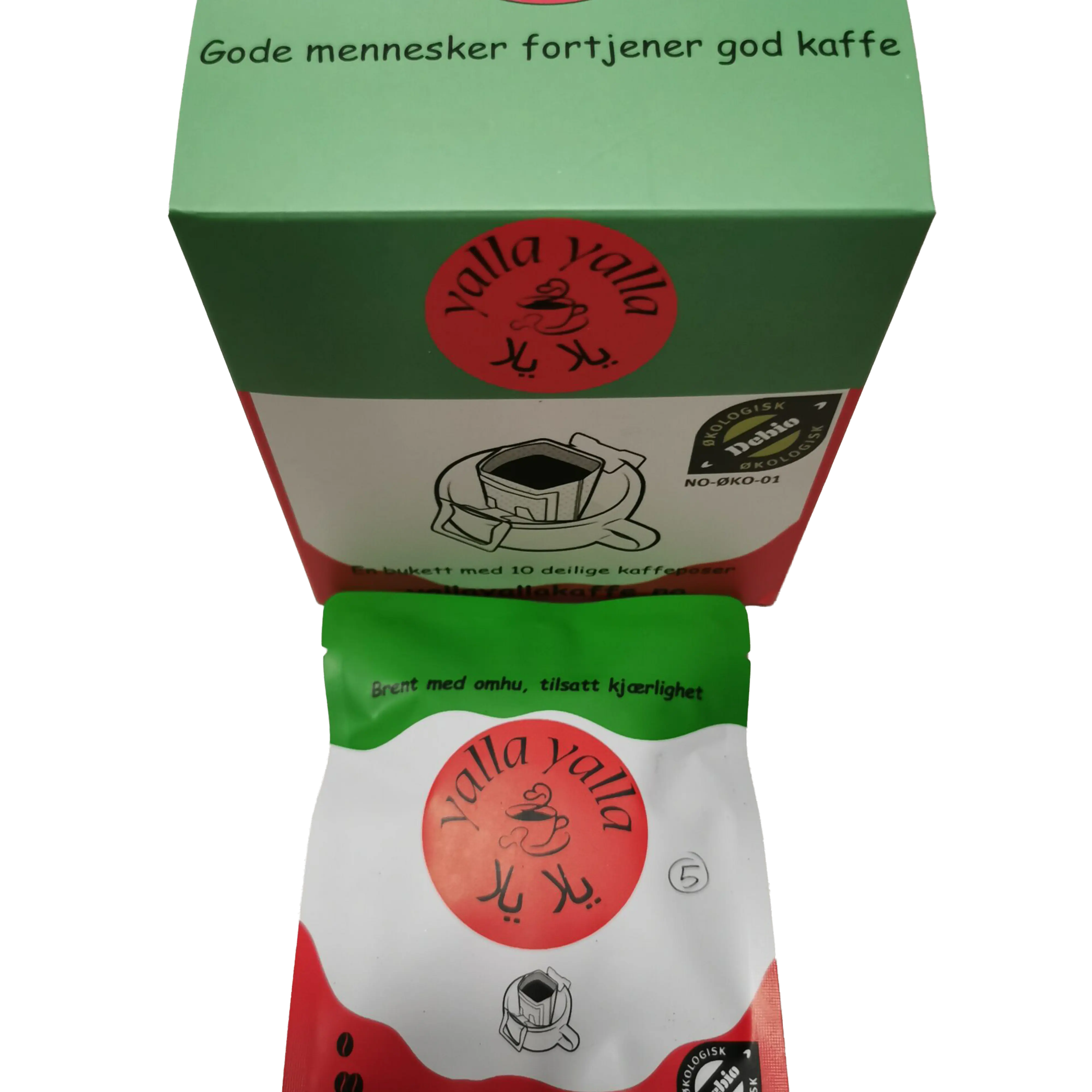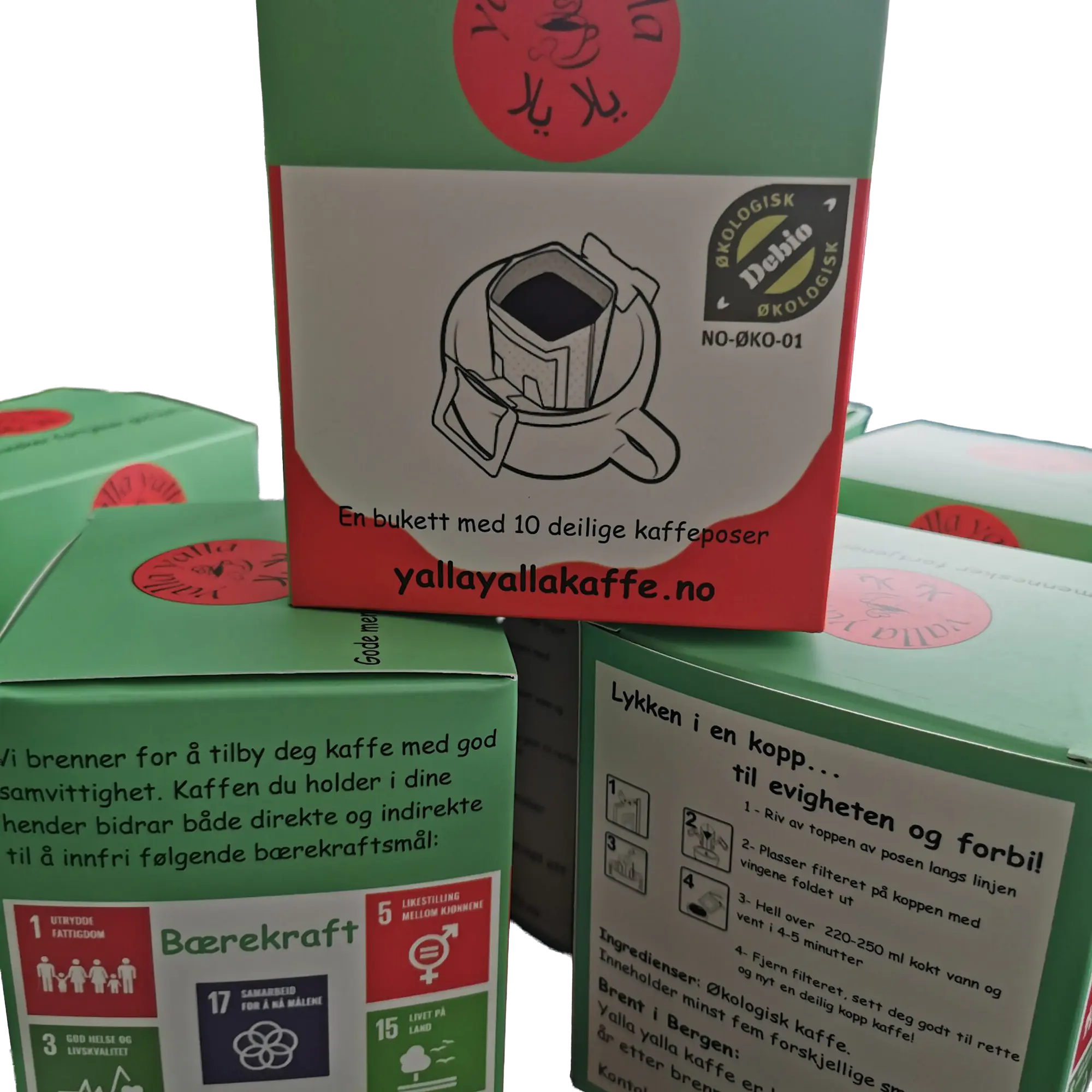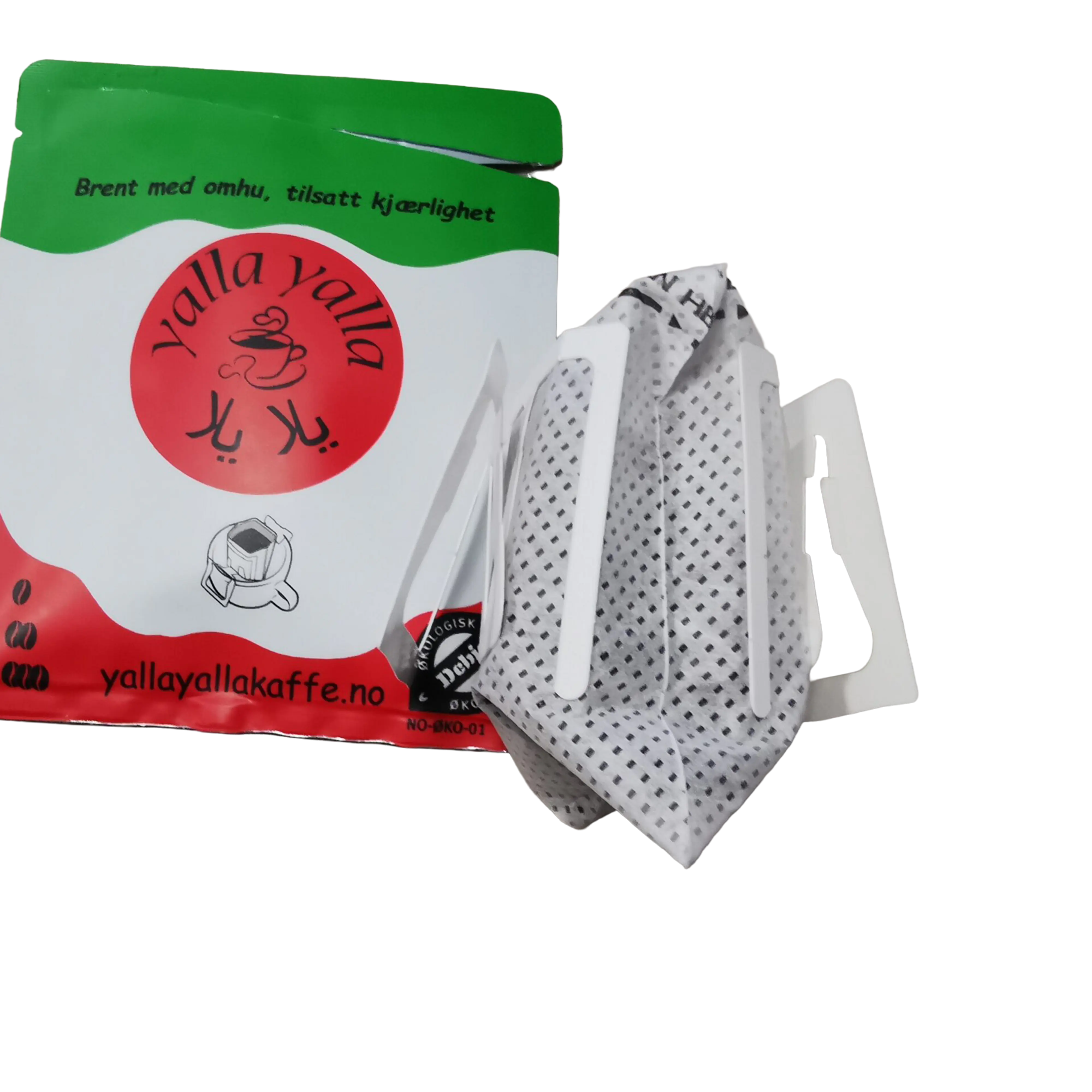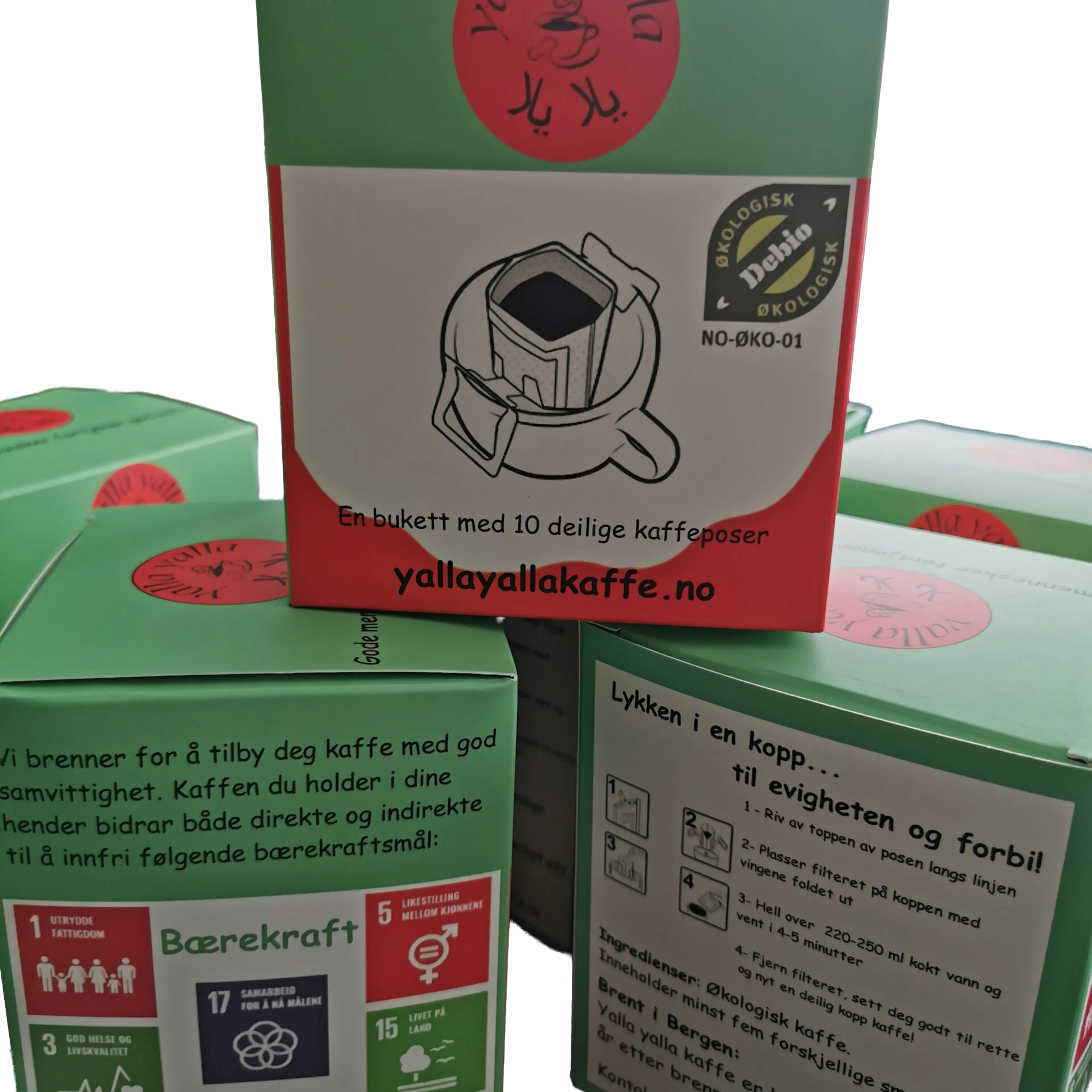 Vi mener det når vi sier: deilig er jorden 💚. Kan du tenke deg en kopp kaffe på fjellet, i skogen eller rett og slett bare en kopp kaffe uten å måtte lage en hel kanne? Dette er løsningen for deg. Vi pakker 10 av våre økologiske kaffetyper i en små kule filtre og poser som er nok til en kopp kaffe. Det eneste du trenger er å helle på varmt vann så har du helt fersk kaffe hvor som helst. Genialt ikke sant? Hver av disse kaffene er unik med egen historie og smak. Vi får ofte spørsmål om hva vi anbefaler. Du kan selvsagt ikke kjøpe en av hver og teste ut hva du liker. Vi selv elsker alle typer vi tilbyr. Nå kan du teste ut mange typer kaffe og finne frem til din favoritt.